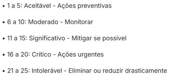 Severidade (ou impacto): Representa a gravidade das consequências prejudiciais à saúde e segurança do trabalhador. Como burnout, depressão ou queda de produtividade.